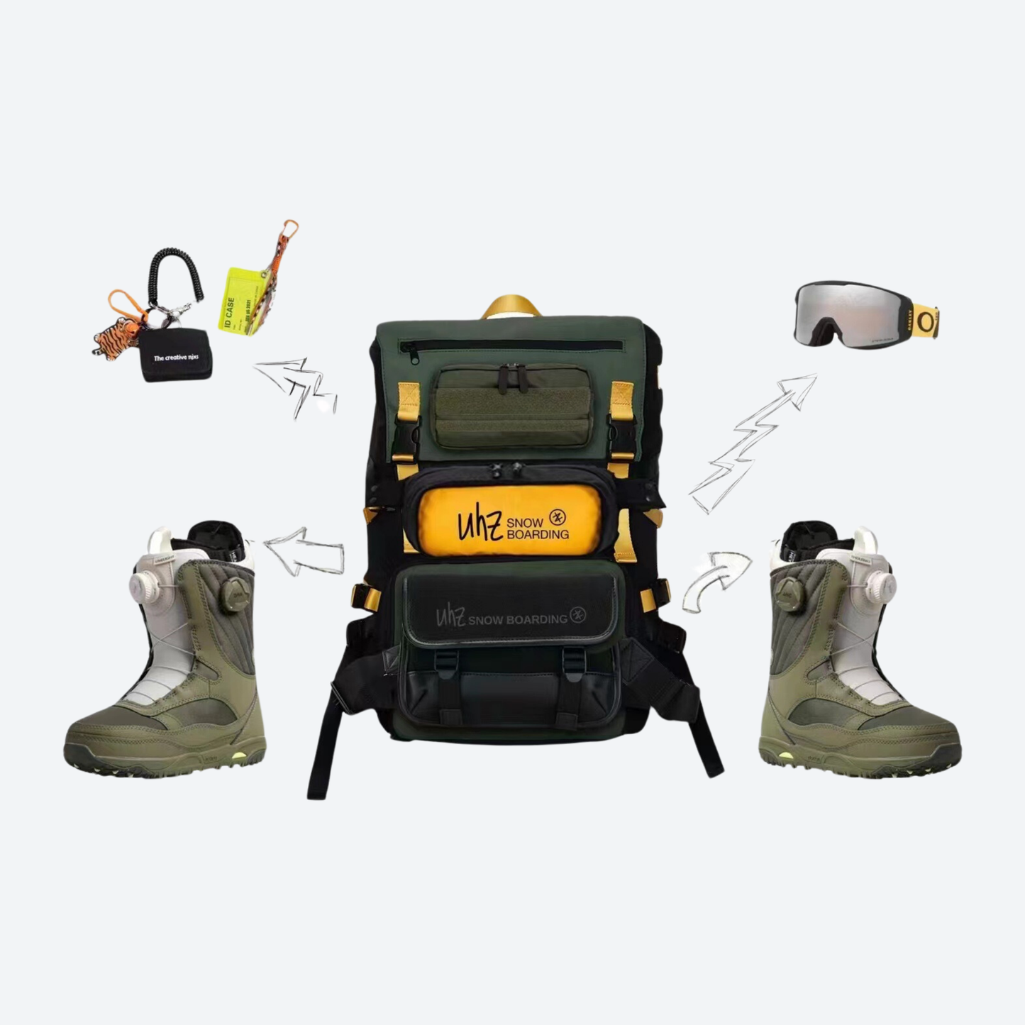 - Modular compartments for goggles, boots and laptop keep gear organized