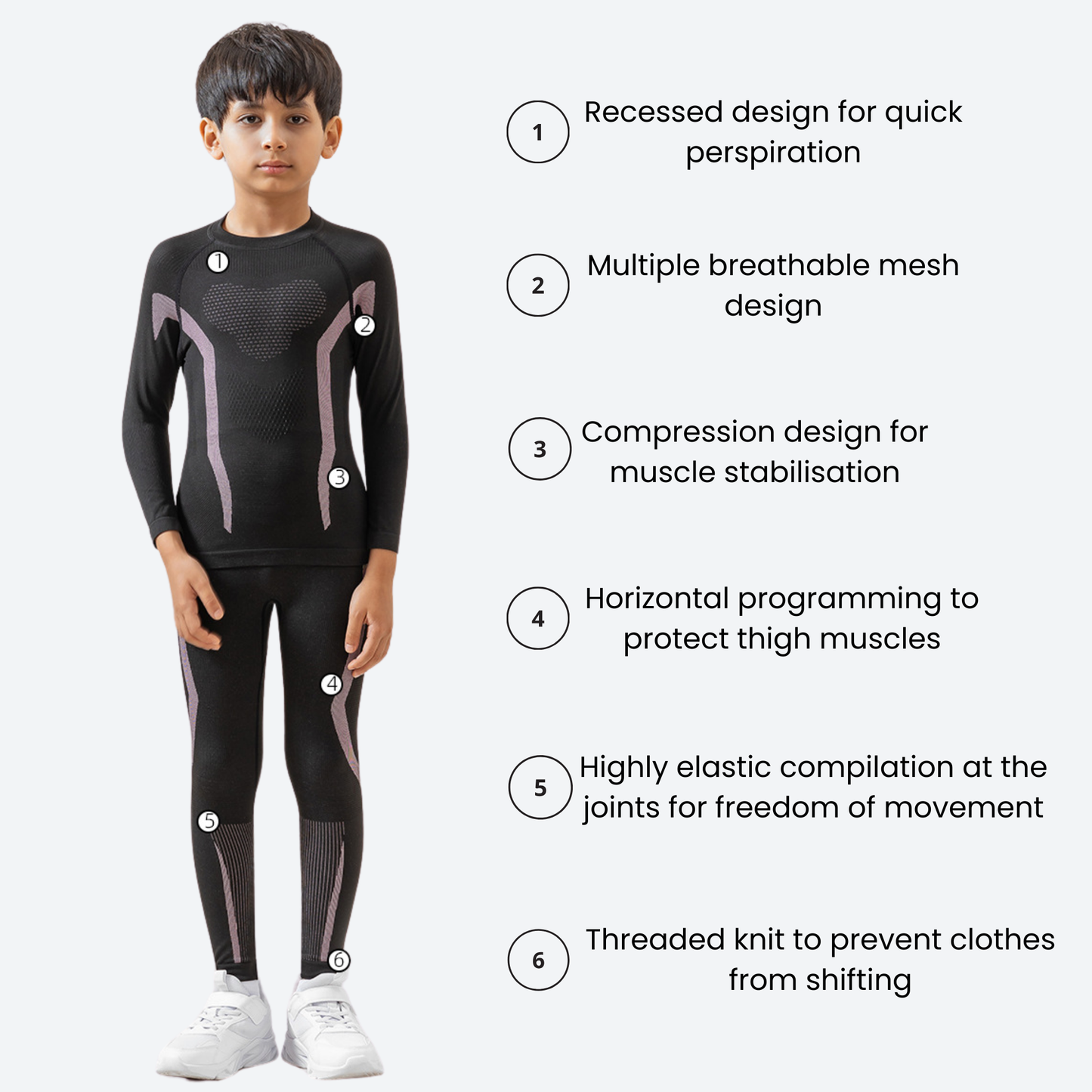 Therma Kids' Compression Base Layer Suit—engineered for maximum support